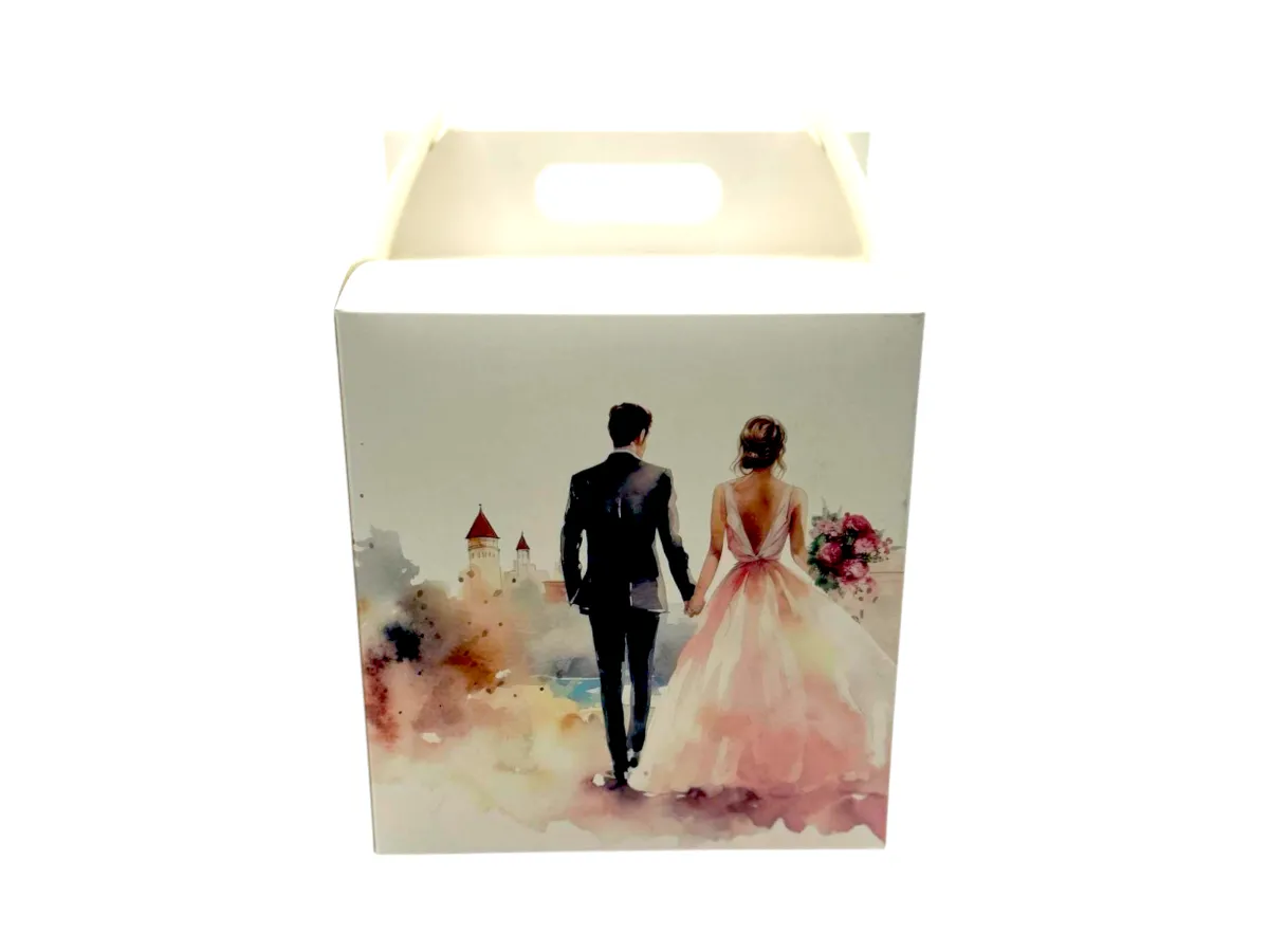 Datorita manerului rezistent inclus, cutia este usor de transportat si ofera o experienta placuta atat pentru organizatori, cat si pentru invitati. Este o alegere inspirata pentru nunti, botezuri sau aniversari, unde se doreste o prezentare unitara si de impact.