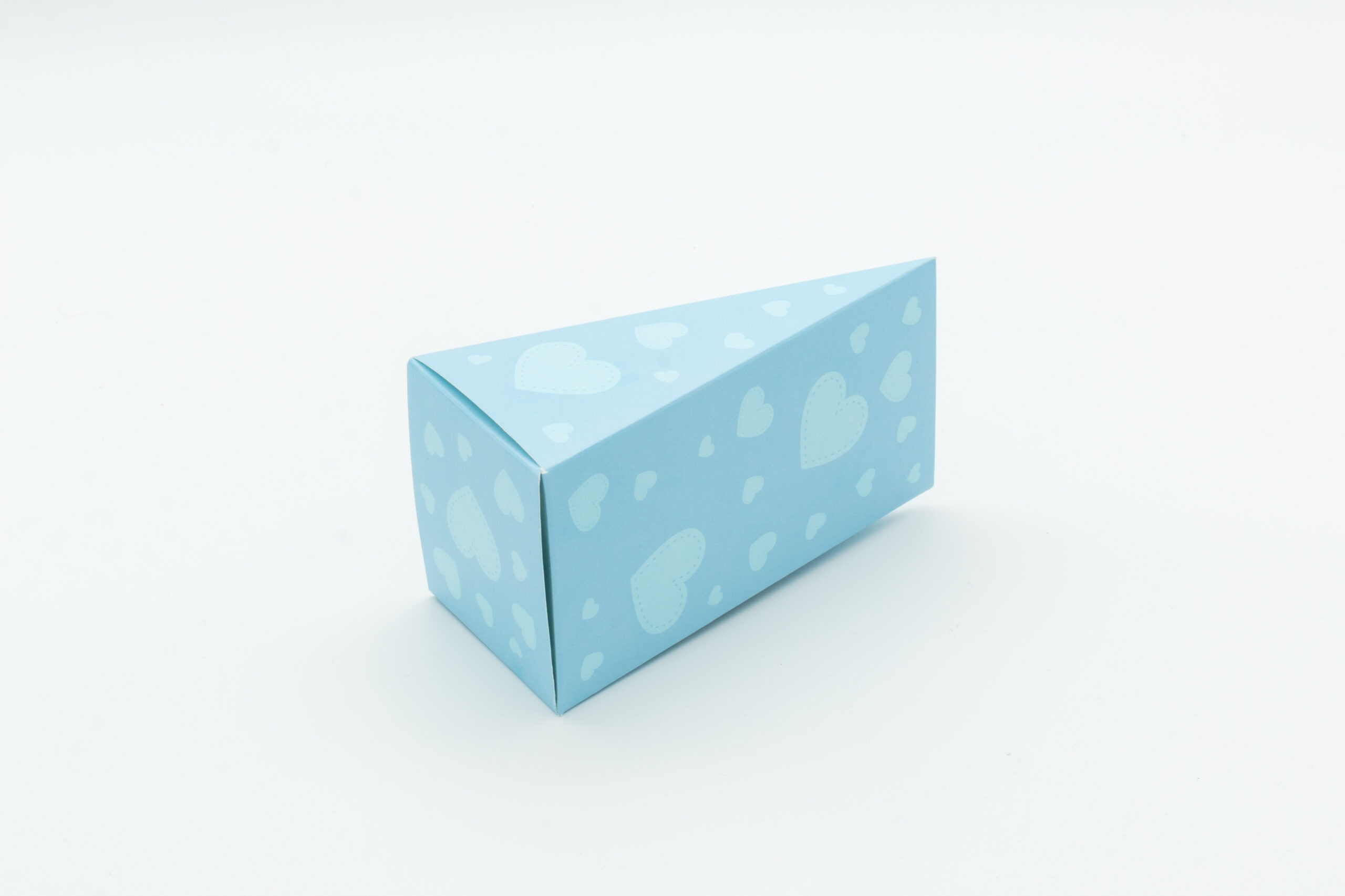 caracteristici si detalii cutii prajituri albastre forma triunghi e-marturii